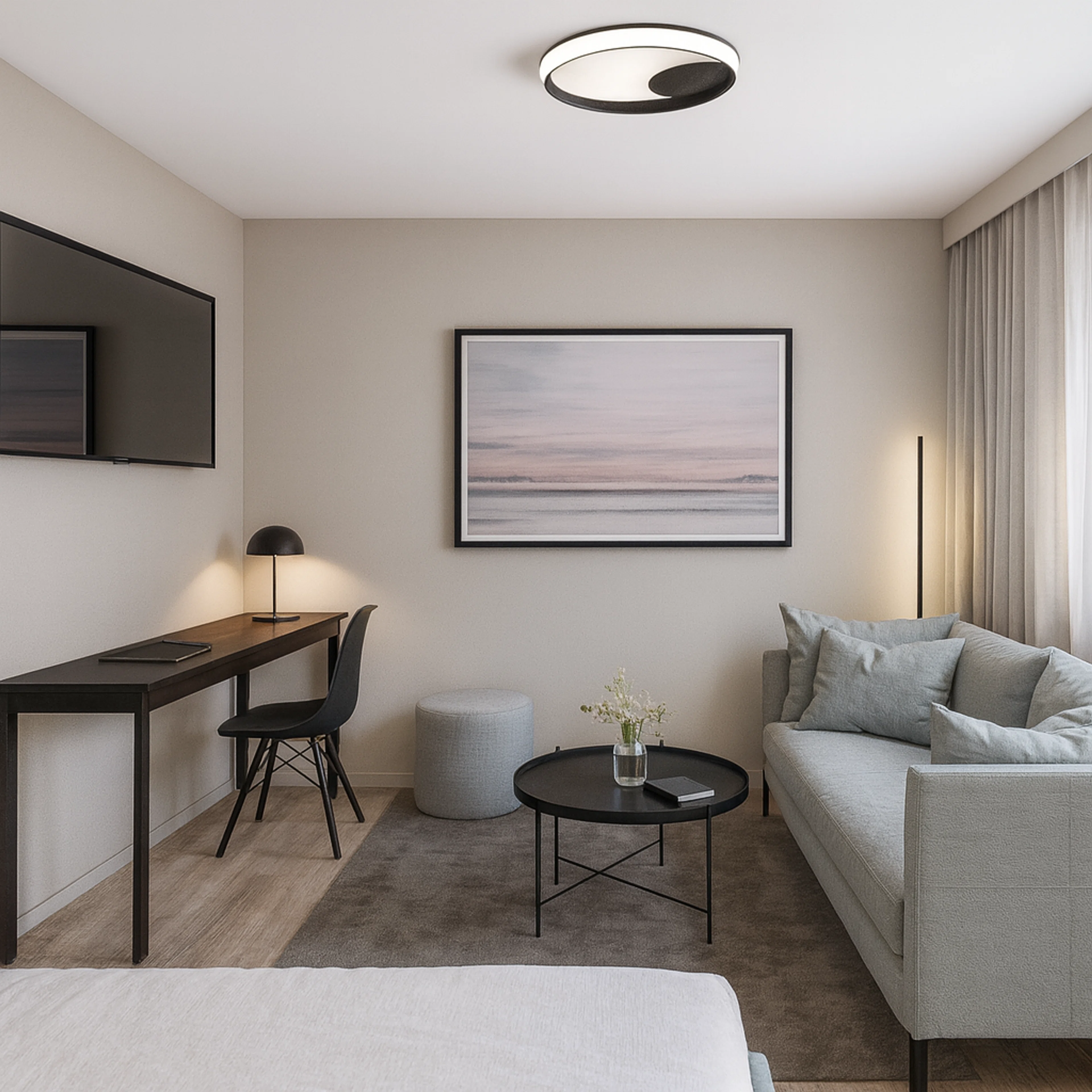 At Leonhardstrasse Apartments, contemporary elegance meets effortless comfort. Each room is thoughtfully designed to balance style and functionality from the intimate Deluxe Junior to the spacious Superior with sweeping city views. Modern amenities such as free Wi-Fi, flat-screen TVs, and mini fridges ensure a seamless stay, while shared kitchens, a cozy lounge, and the on-site La Lup bistro add to the sense of home. Whether for a few nights or an extended visit, every detail invites you to relax, unwind, and feel connected to Zurich’s vibrant spirit.